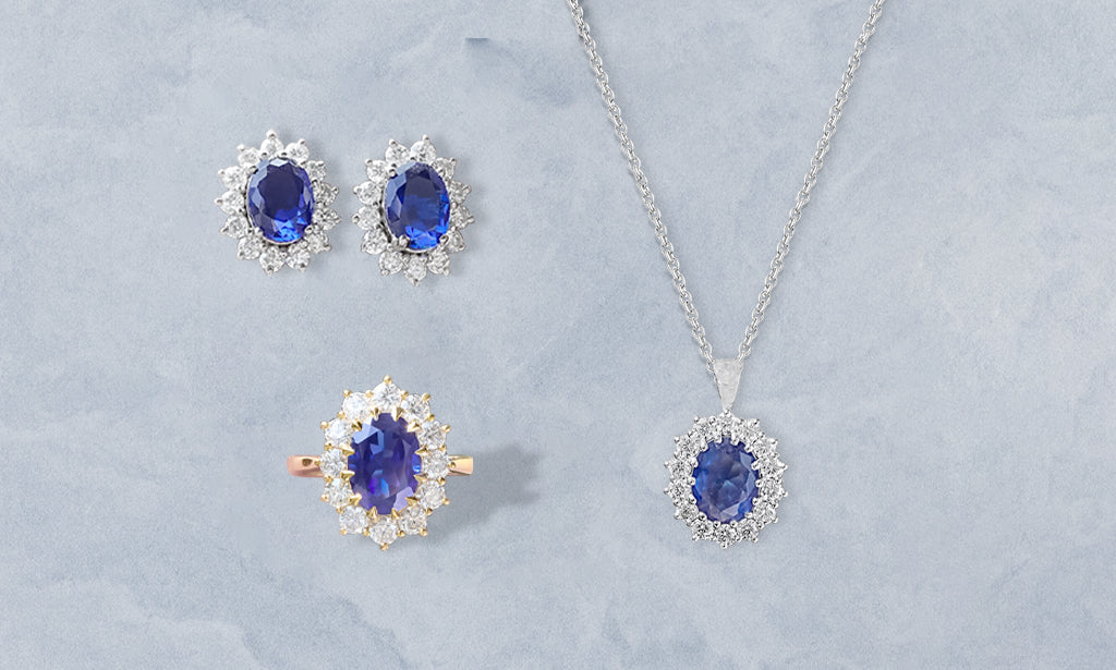 Blue Sapphire Oval Gemstone Halo Pendant